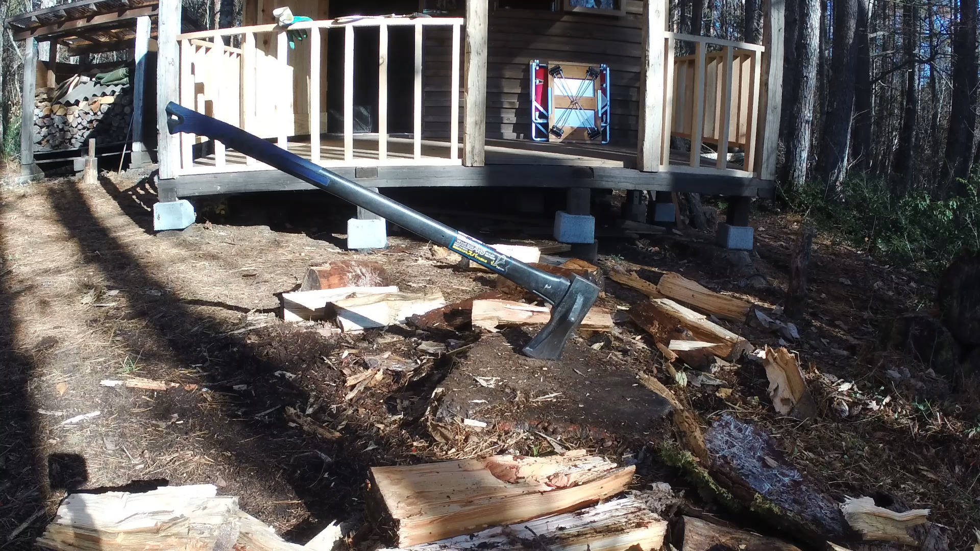 地道に薪割りしています。