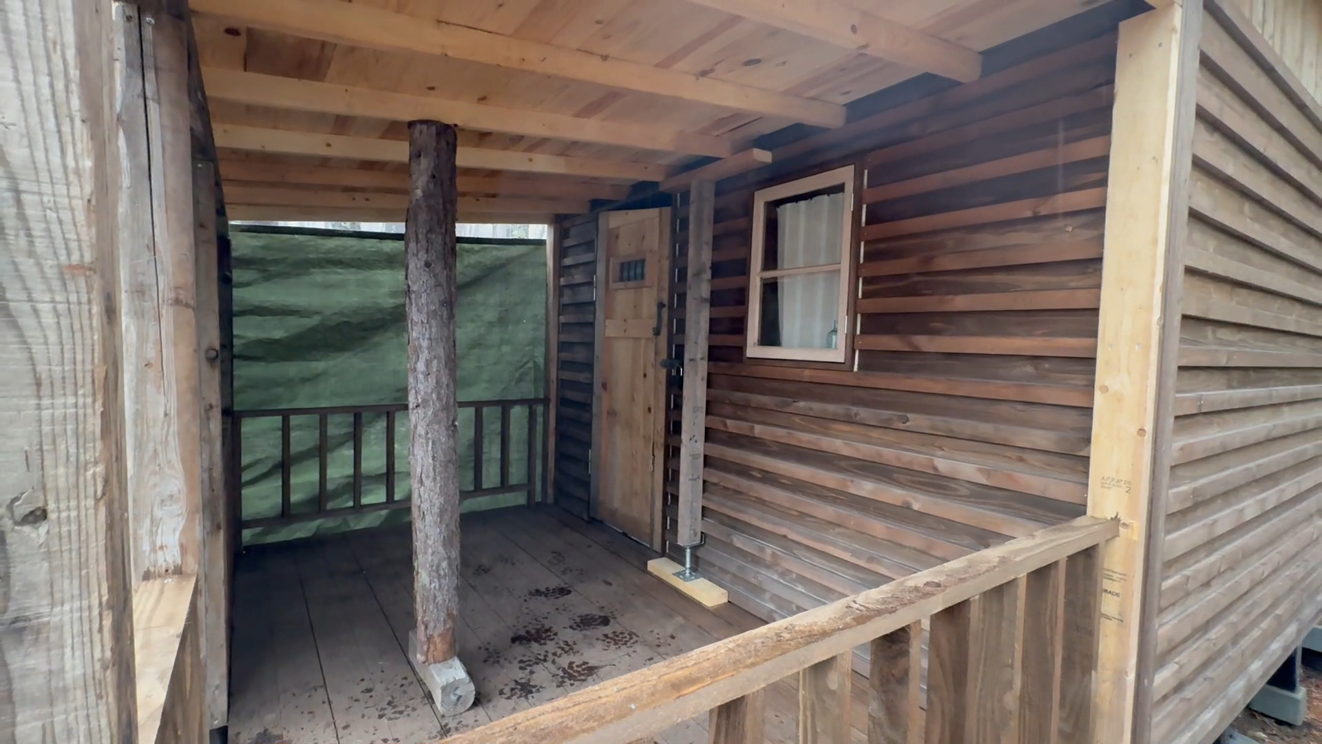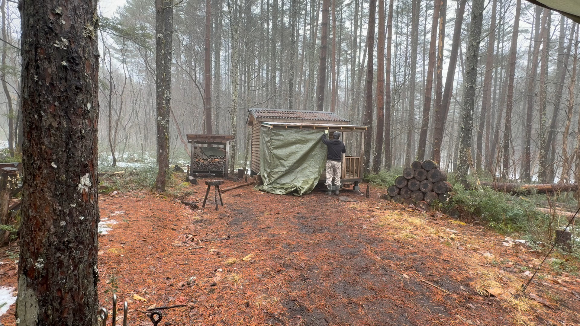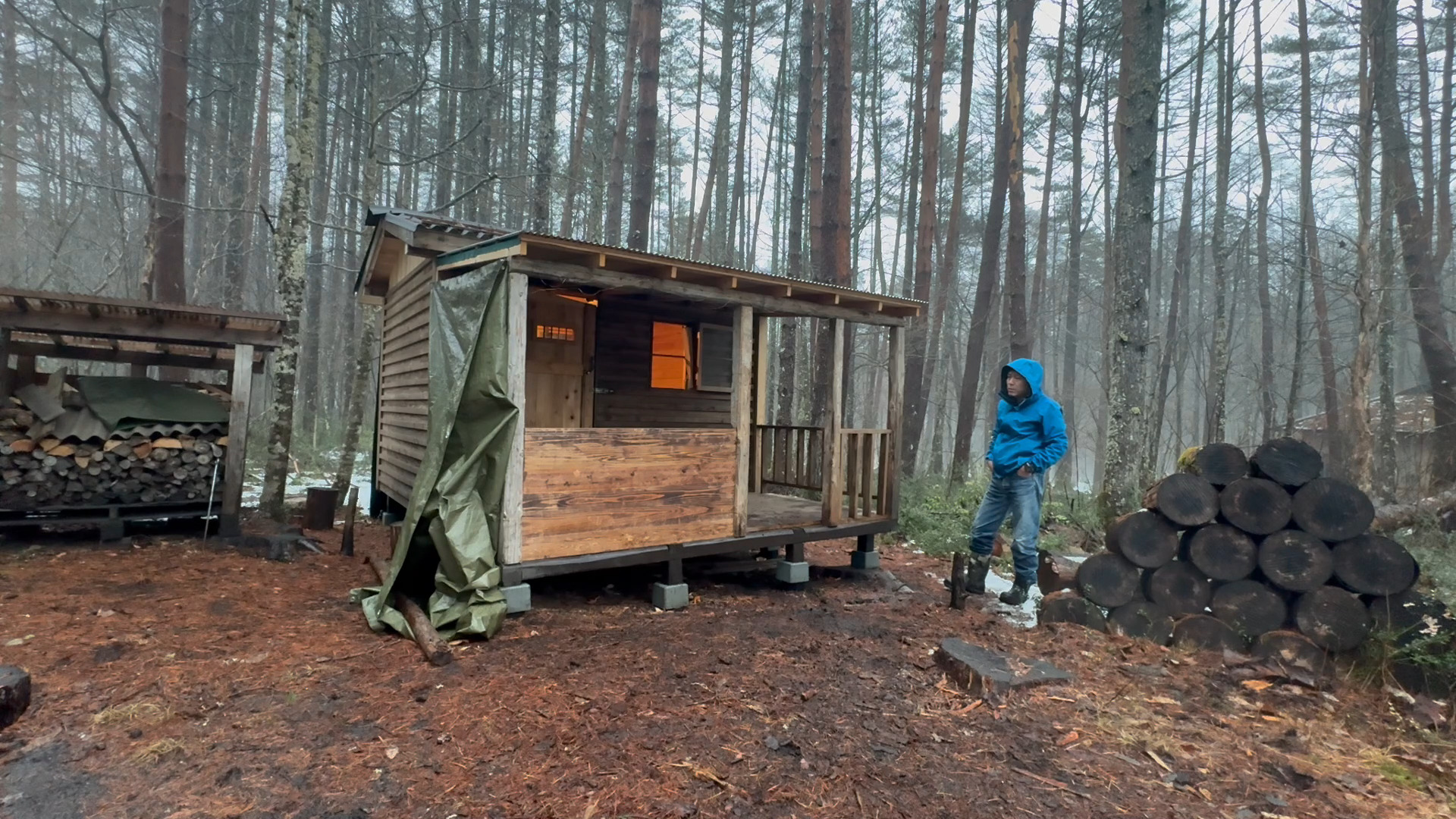 2020年の8月に開拓をスタートして、物置小屋、薪棚、雨水貯水システム、そして寝泊まり出来る小さな小さな山小屋を建てました。