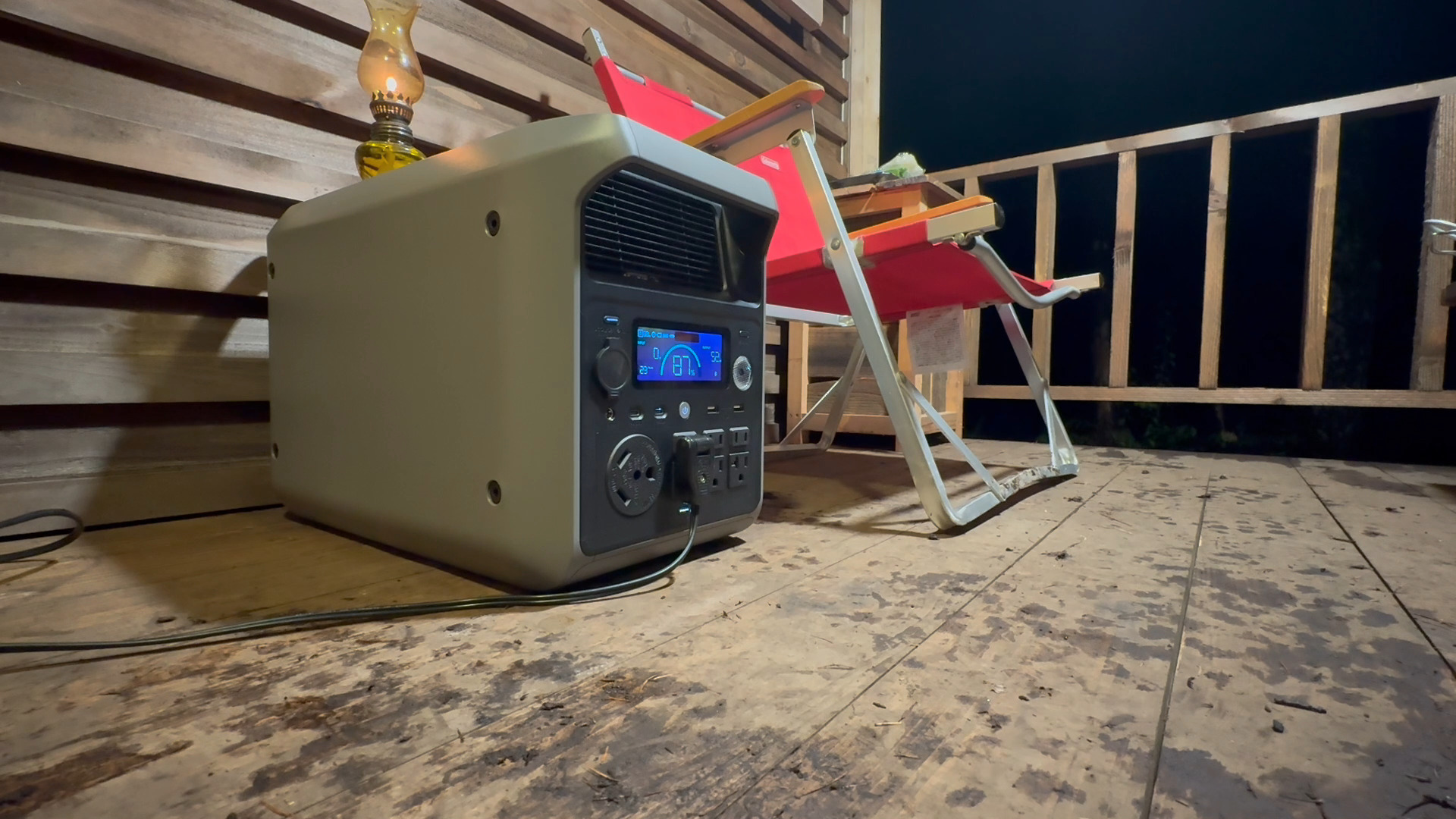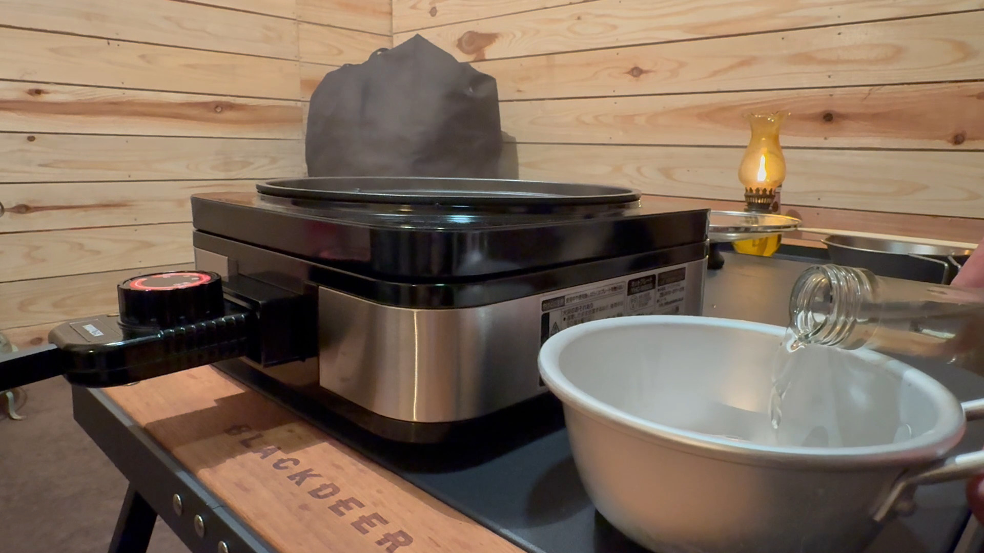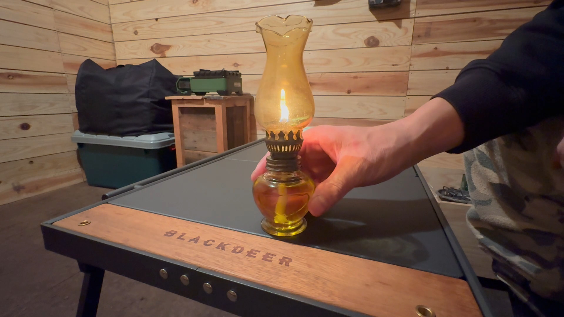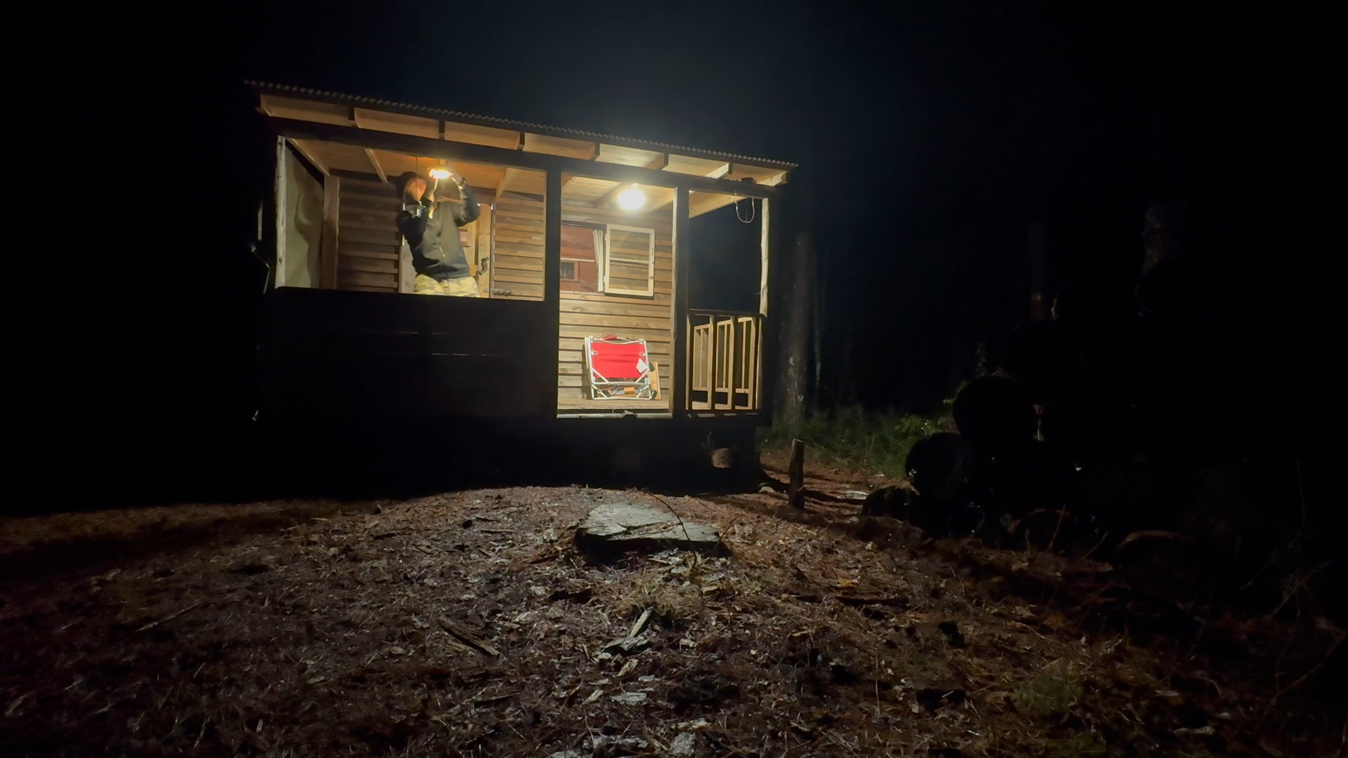 お気に入りのランプに火を灯し、ウッドデッキに照明を点けて、