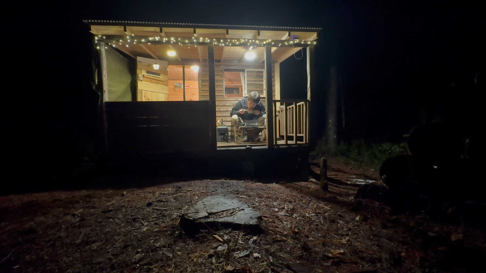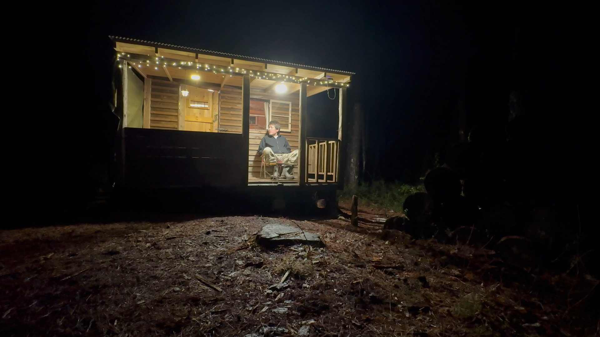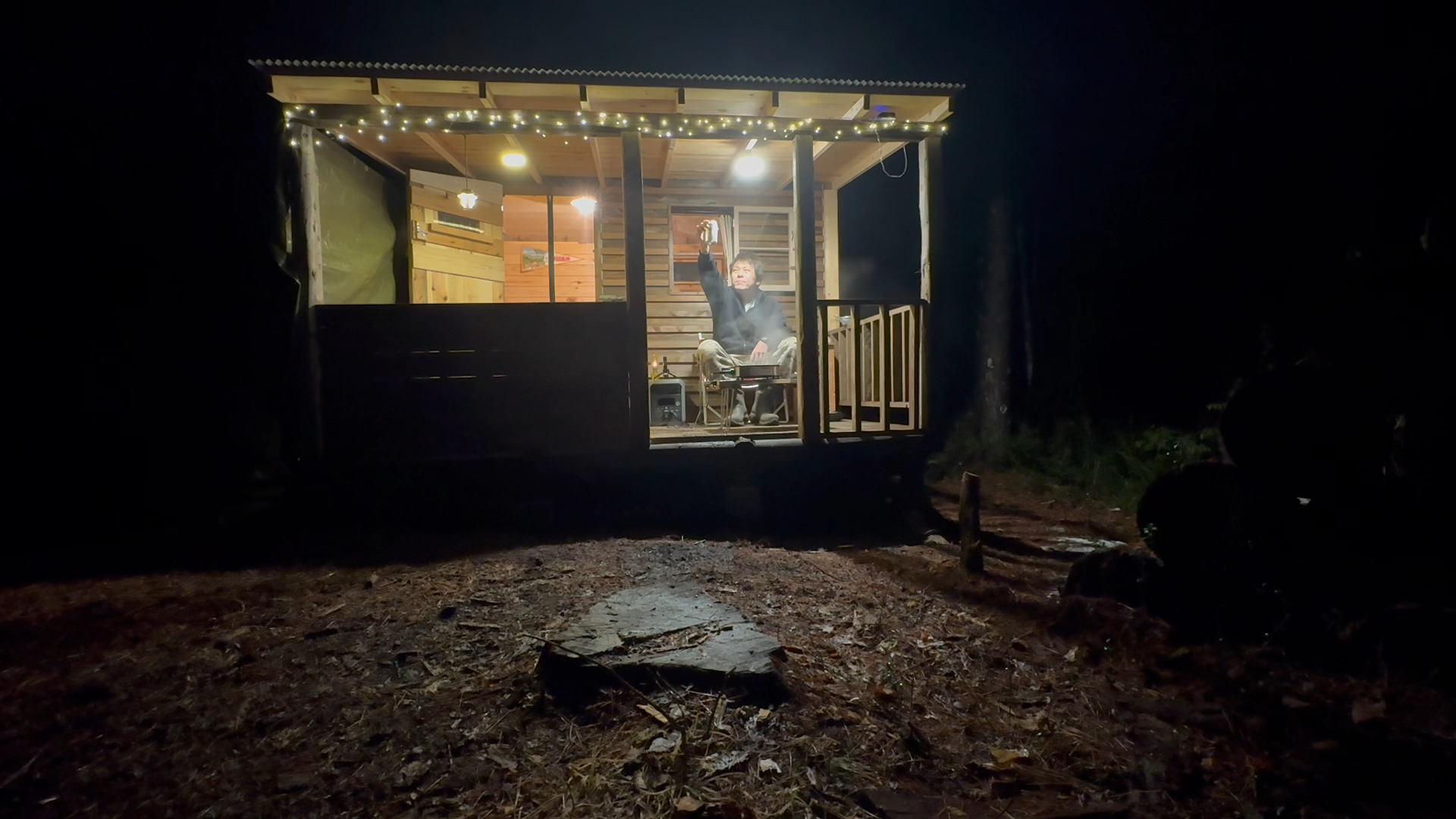 イルミネーションを点ければ寛ぎのスペースの完成です。