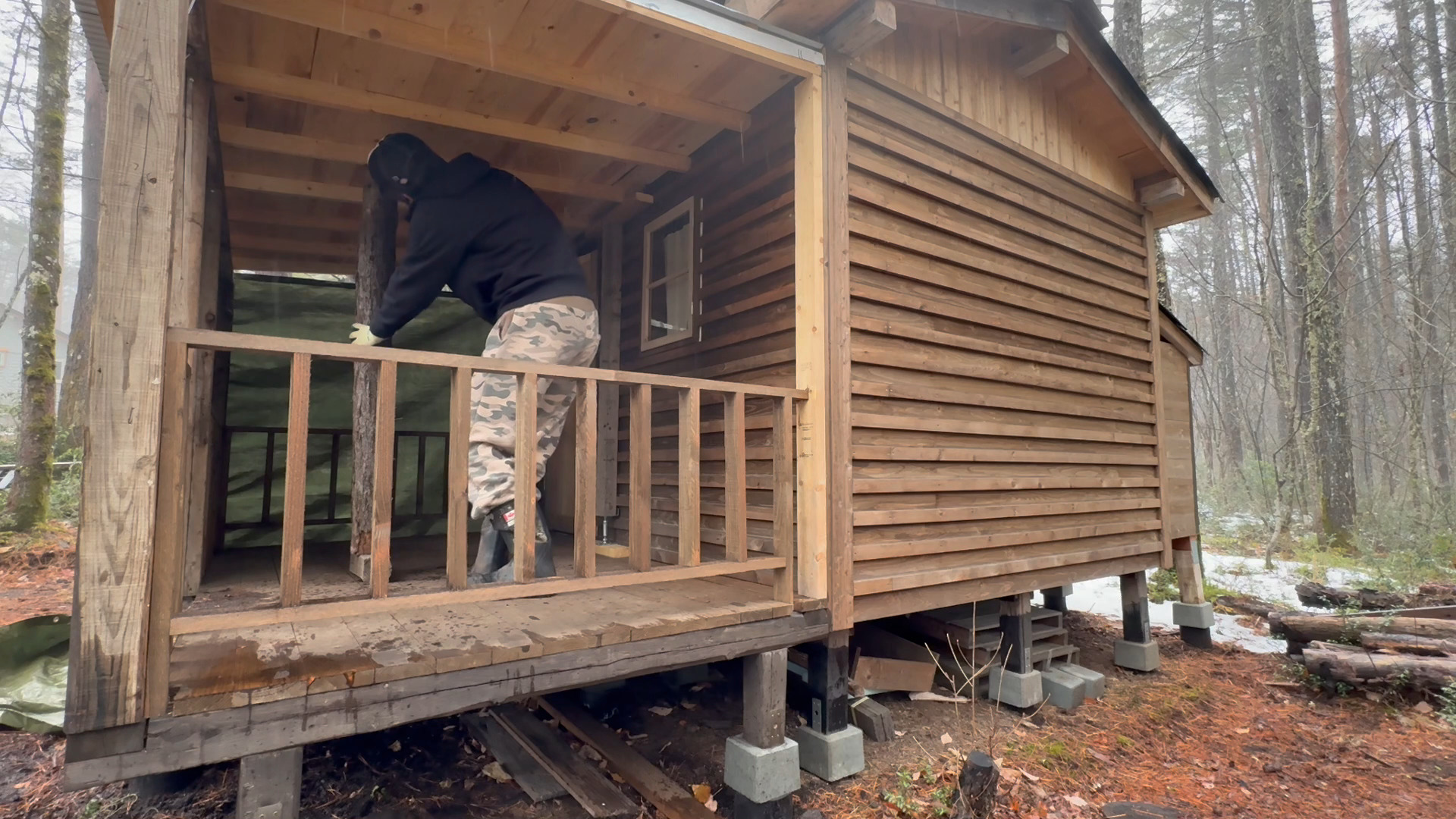 前回自作の山小屋のウッドデッキの柵の一部に柵カバーを施工しました。