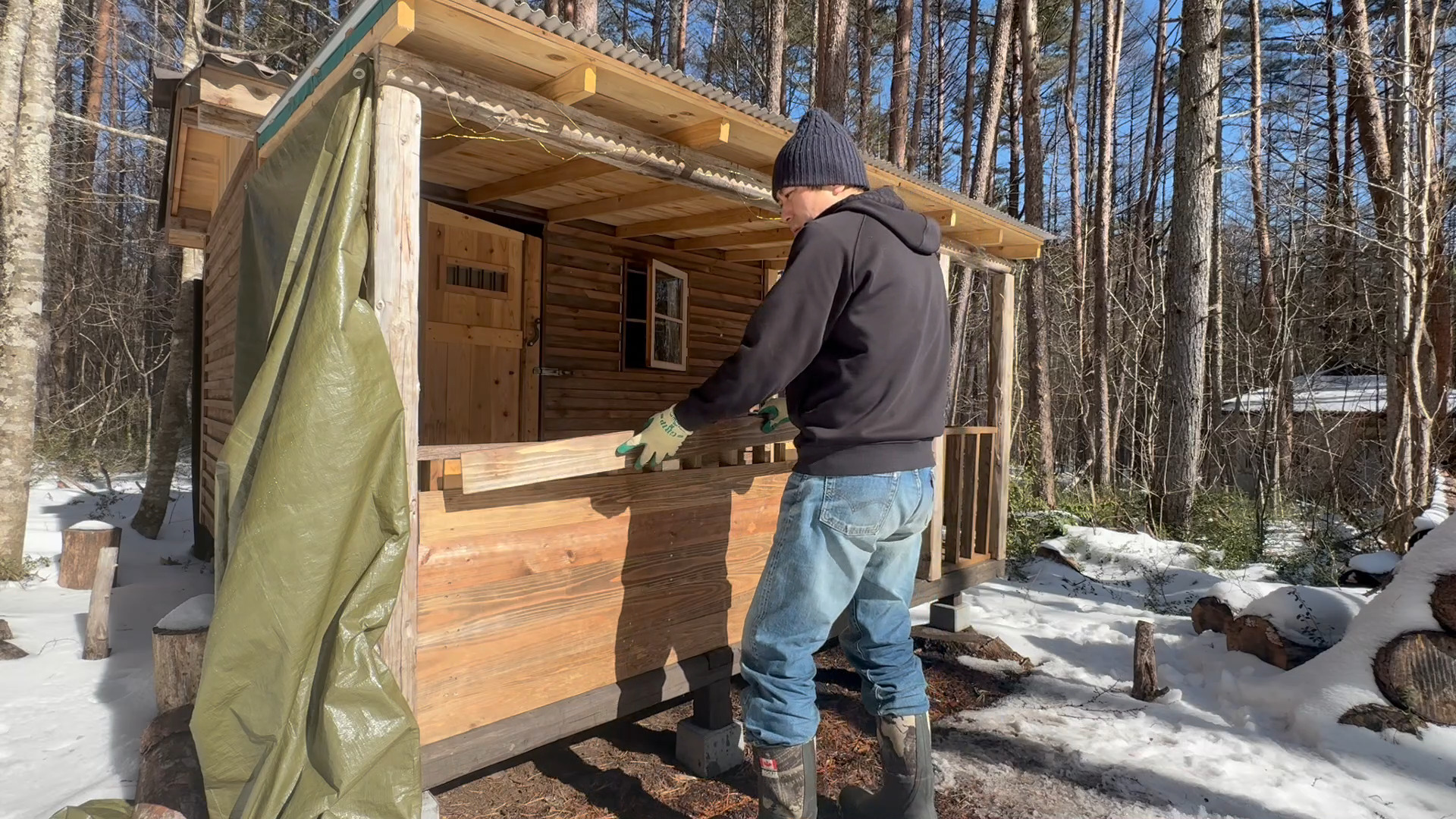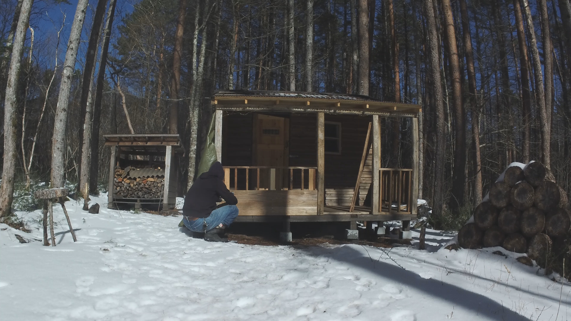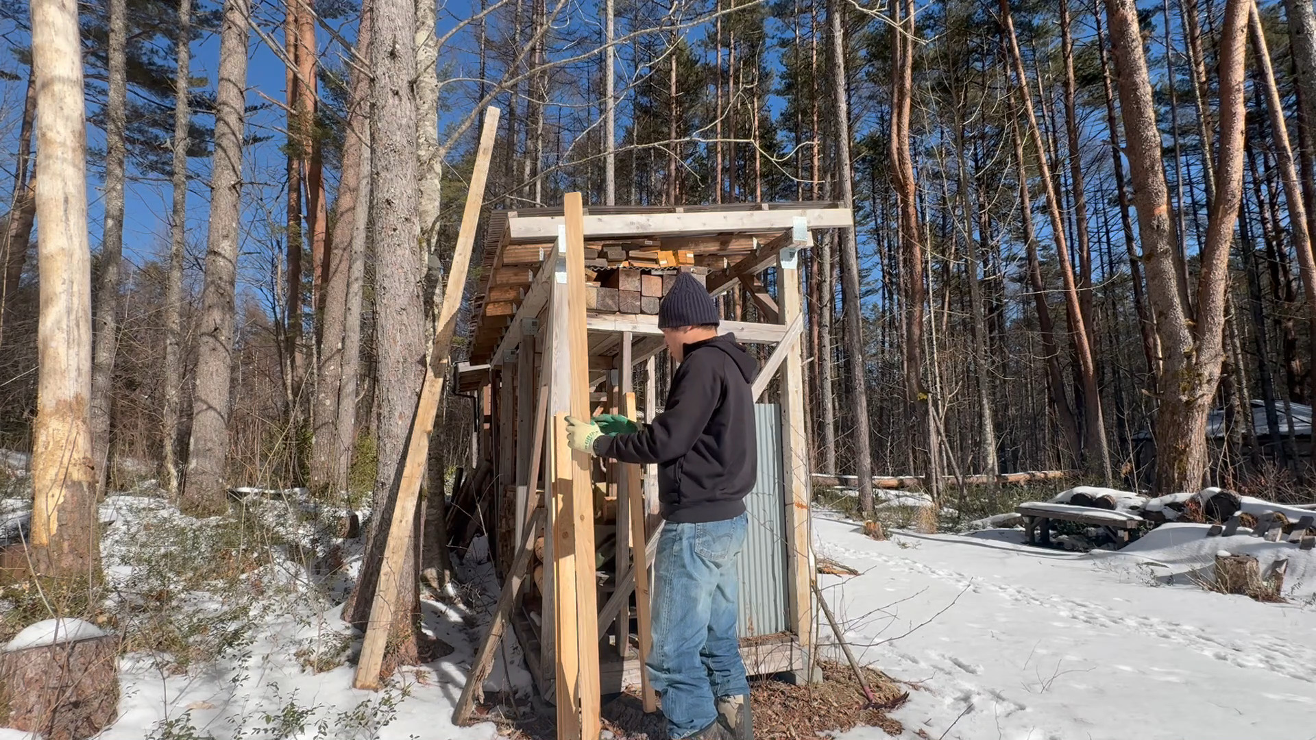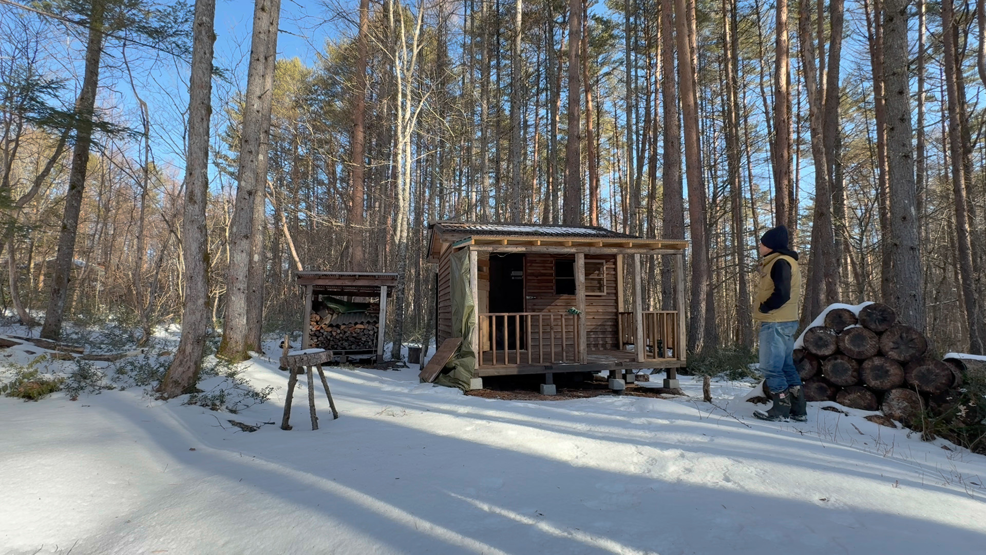 2020年の8月に開拓をスタートして、物置小屋、薪棚、雨水貯水システム、そして寝泊まり出来る小さな小さな山小屋を建てました。