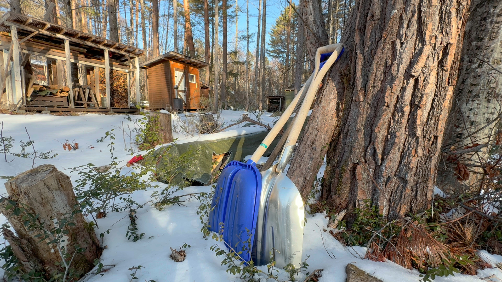 春が来て雪が溶けたらこの場所にトイレ棟を建てようと思っています。