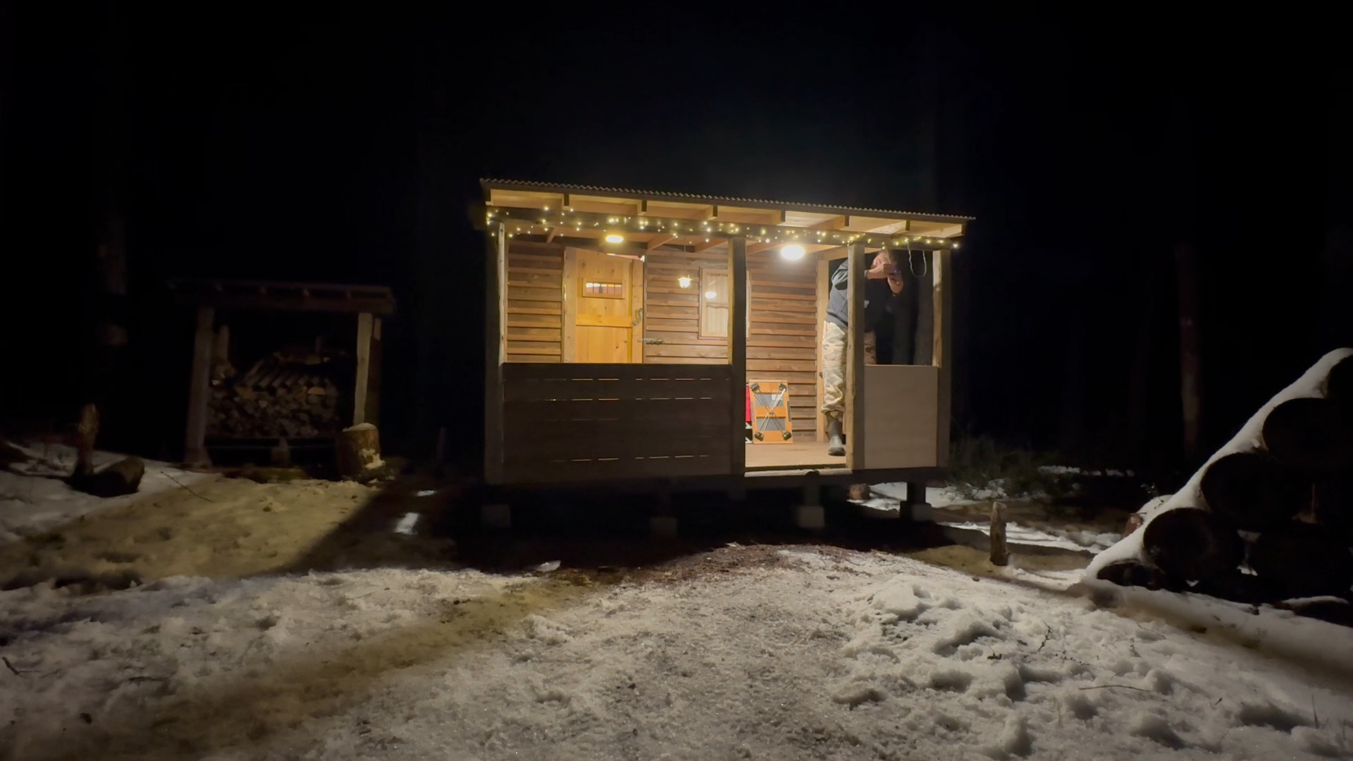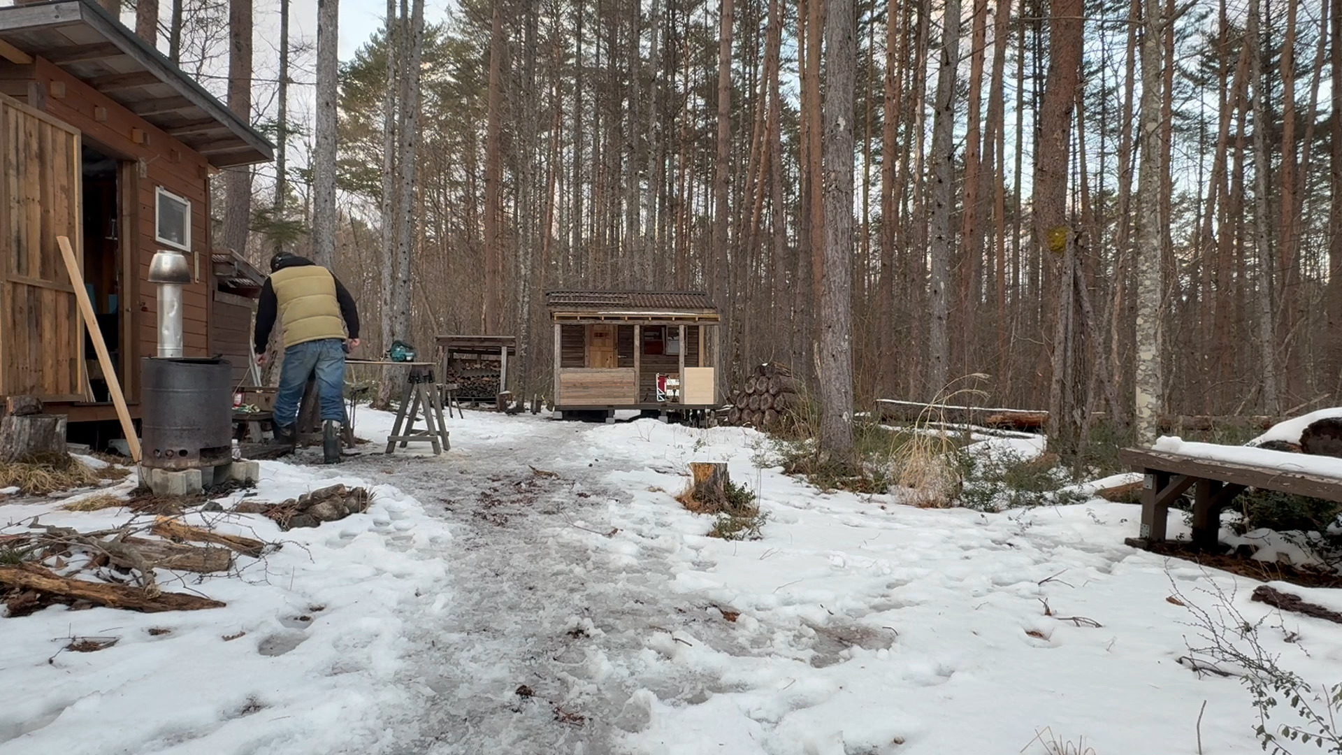 2020年の8月に開拓をスタートして、物置小屋、薪棚、雨水貯水システム、そして寝泊まり出来る小さな小さな山小屋を建てました。