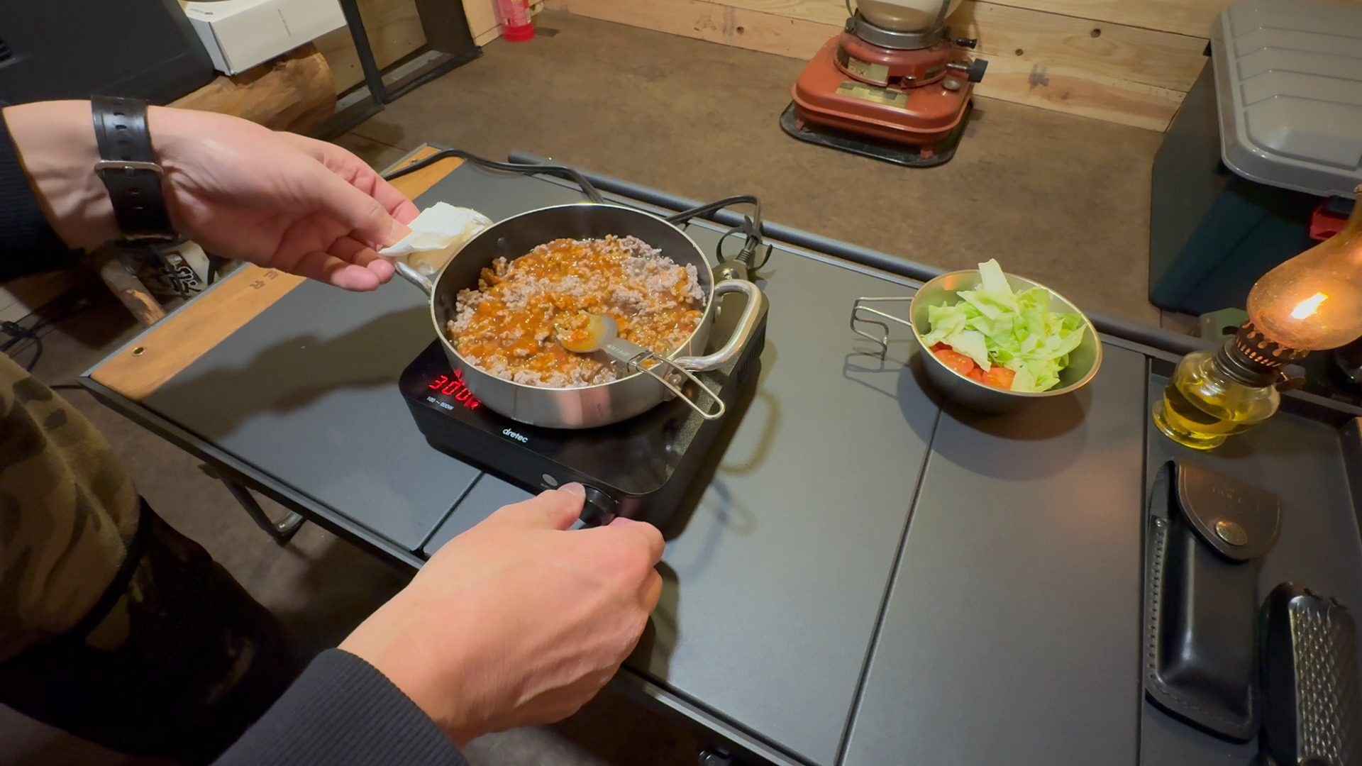 お気に入りのランタンを点けて気分は上々