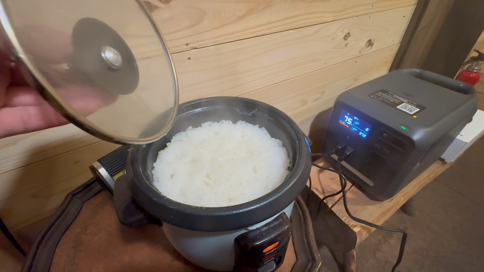ミニ炊飯器とIHコンロを使って残量は74%です。