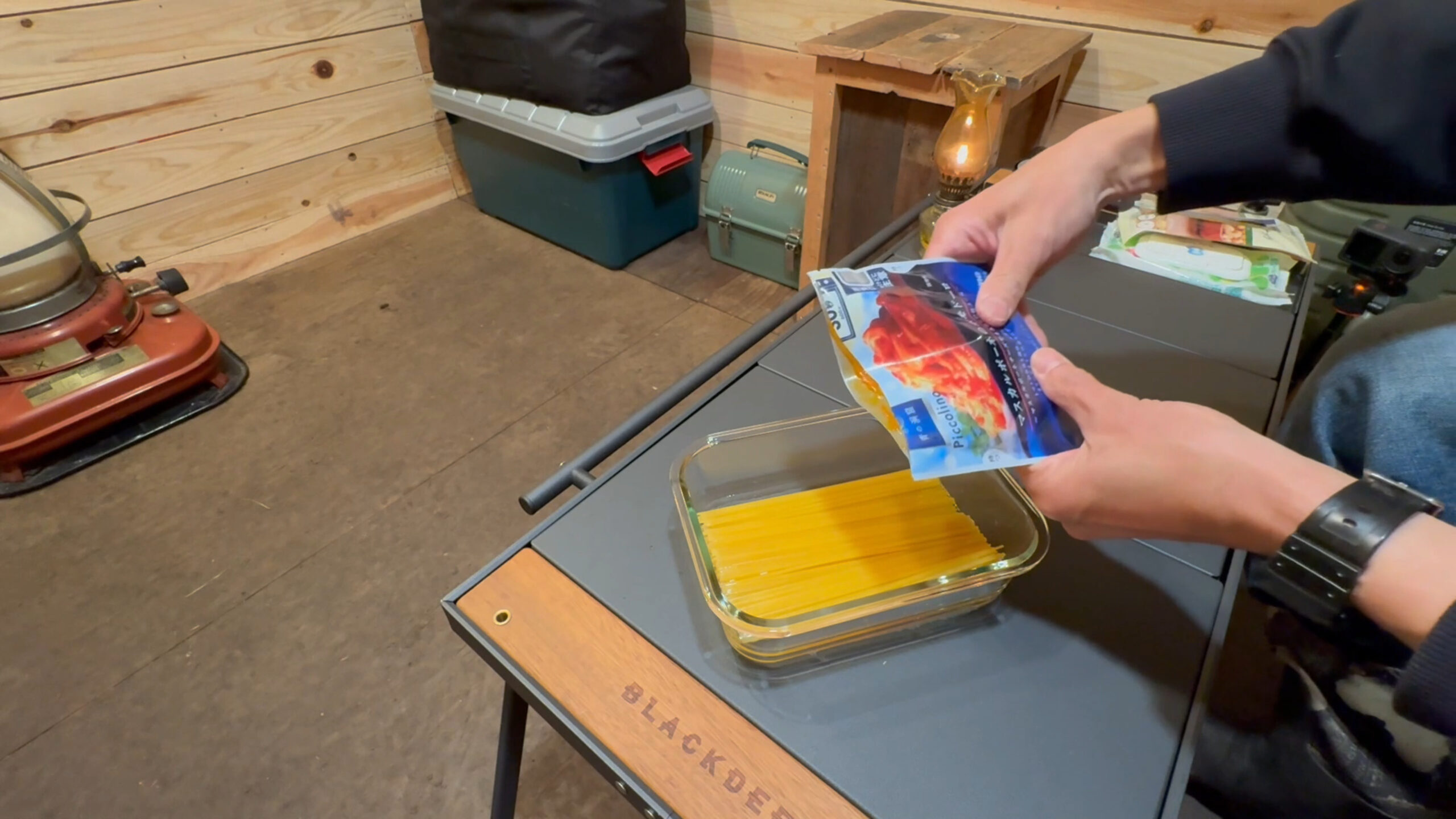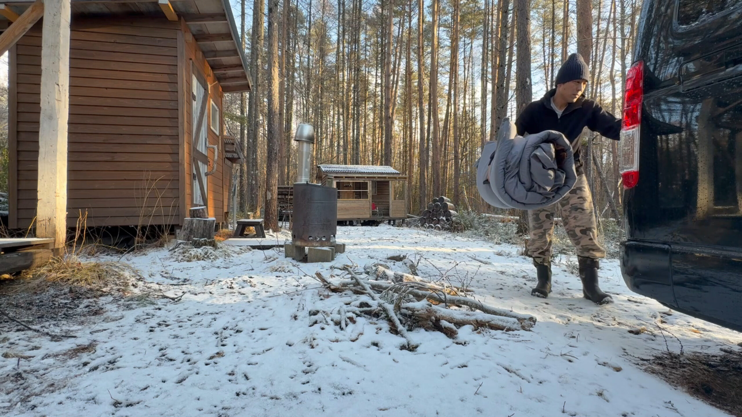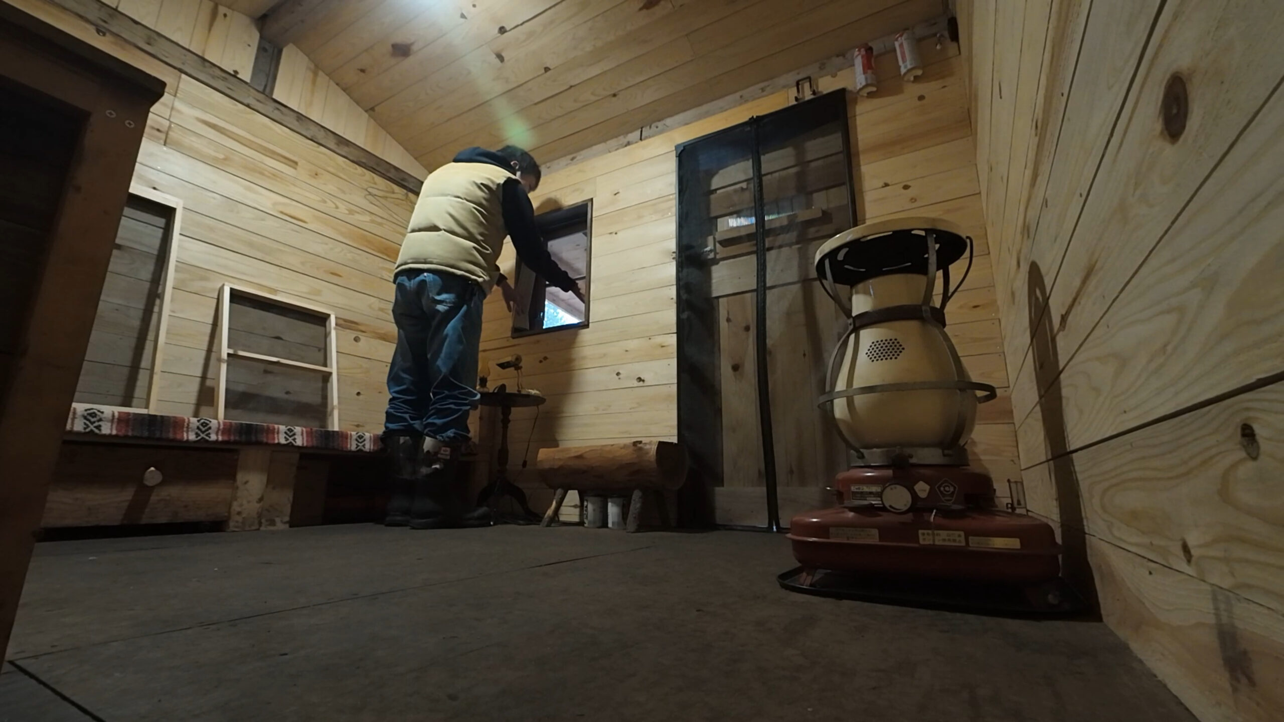 先ずはストーブに火を入れて小屋内の換気をします。