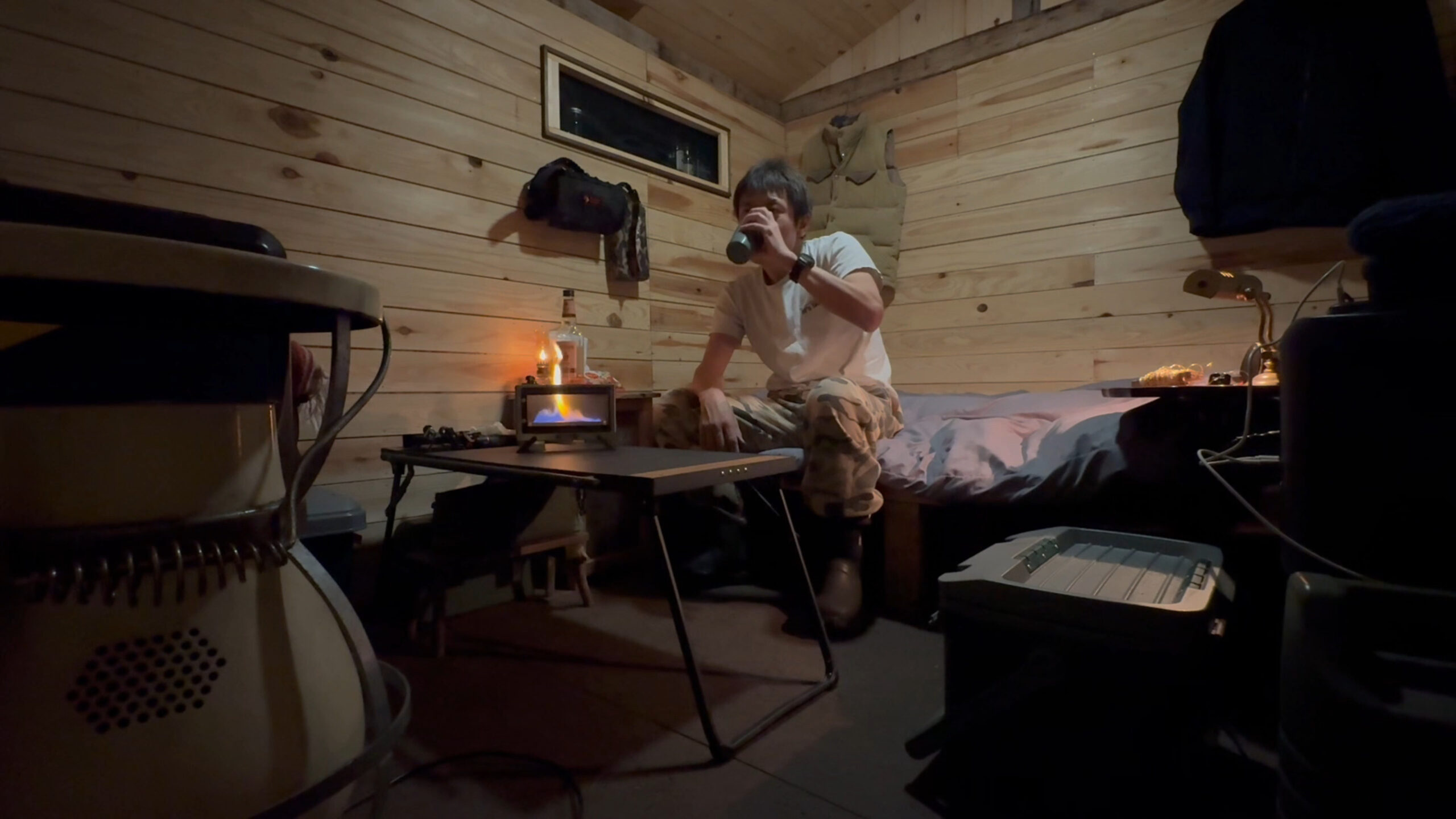 薄目のハイボールと卓上ミニ暖炉