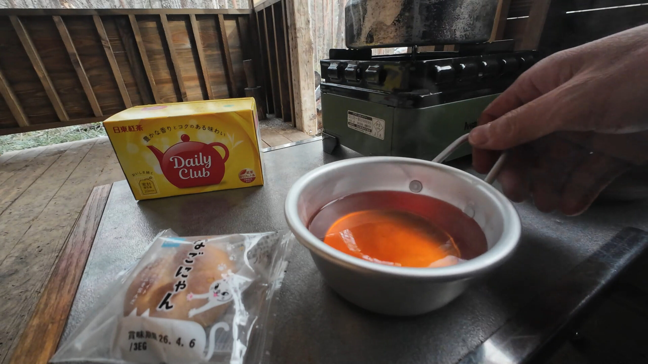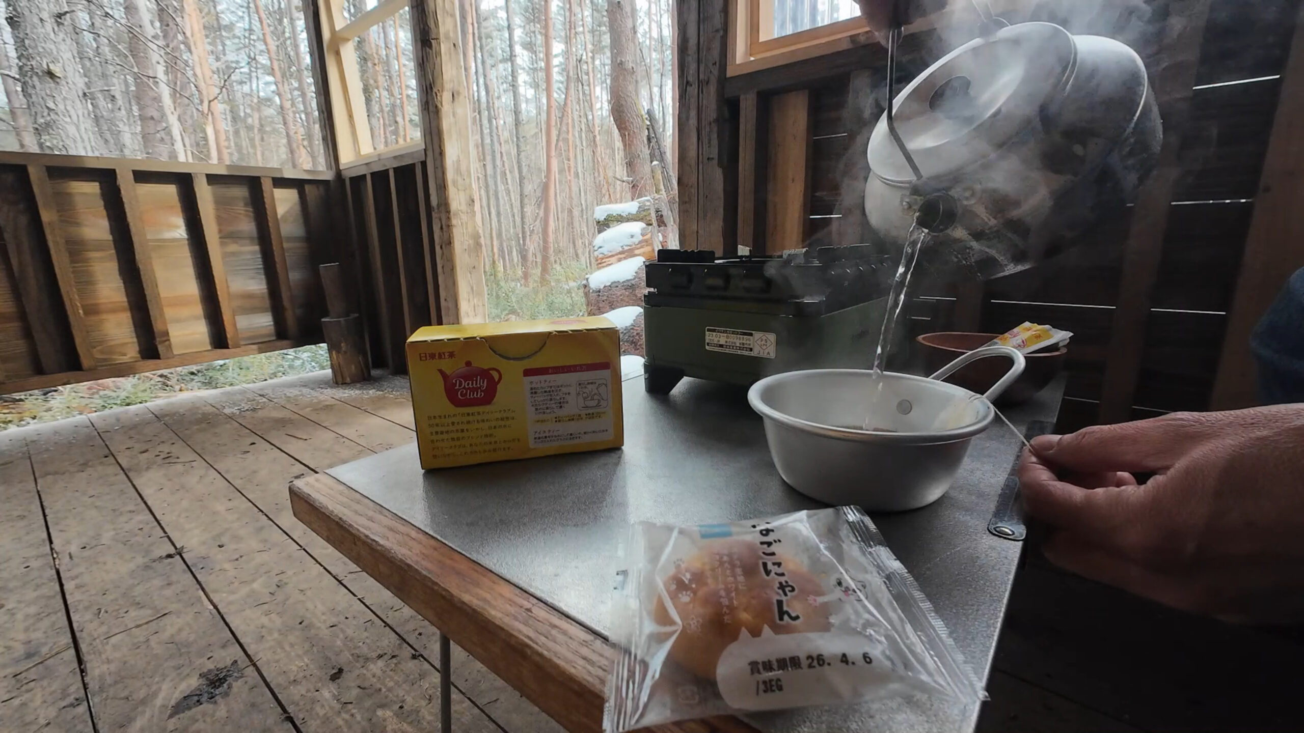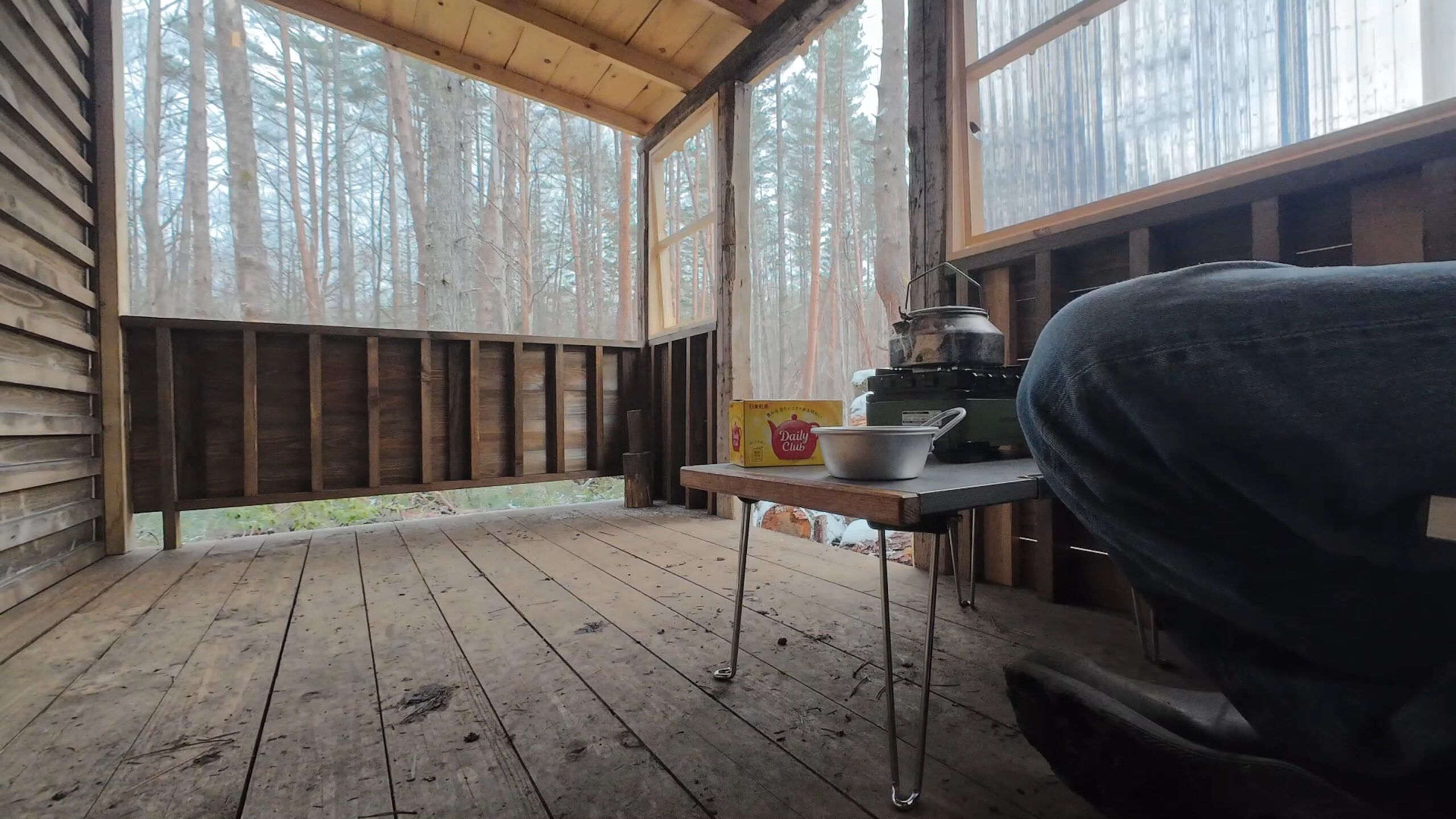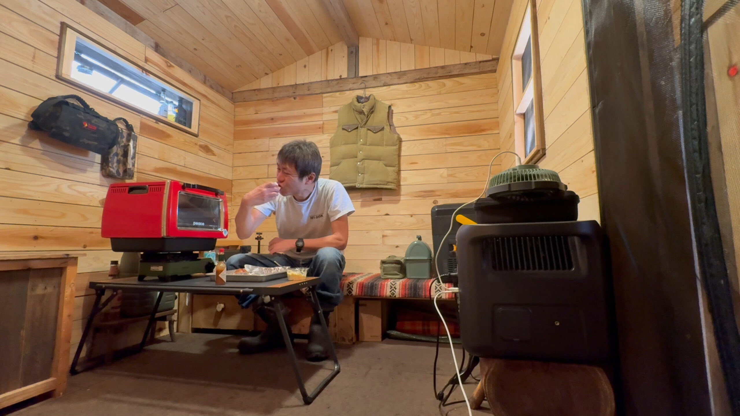午前の作業を終えてランチタイムで小屋内に戻って来ました。