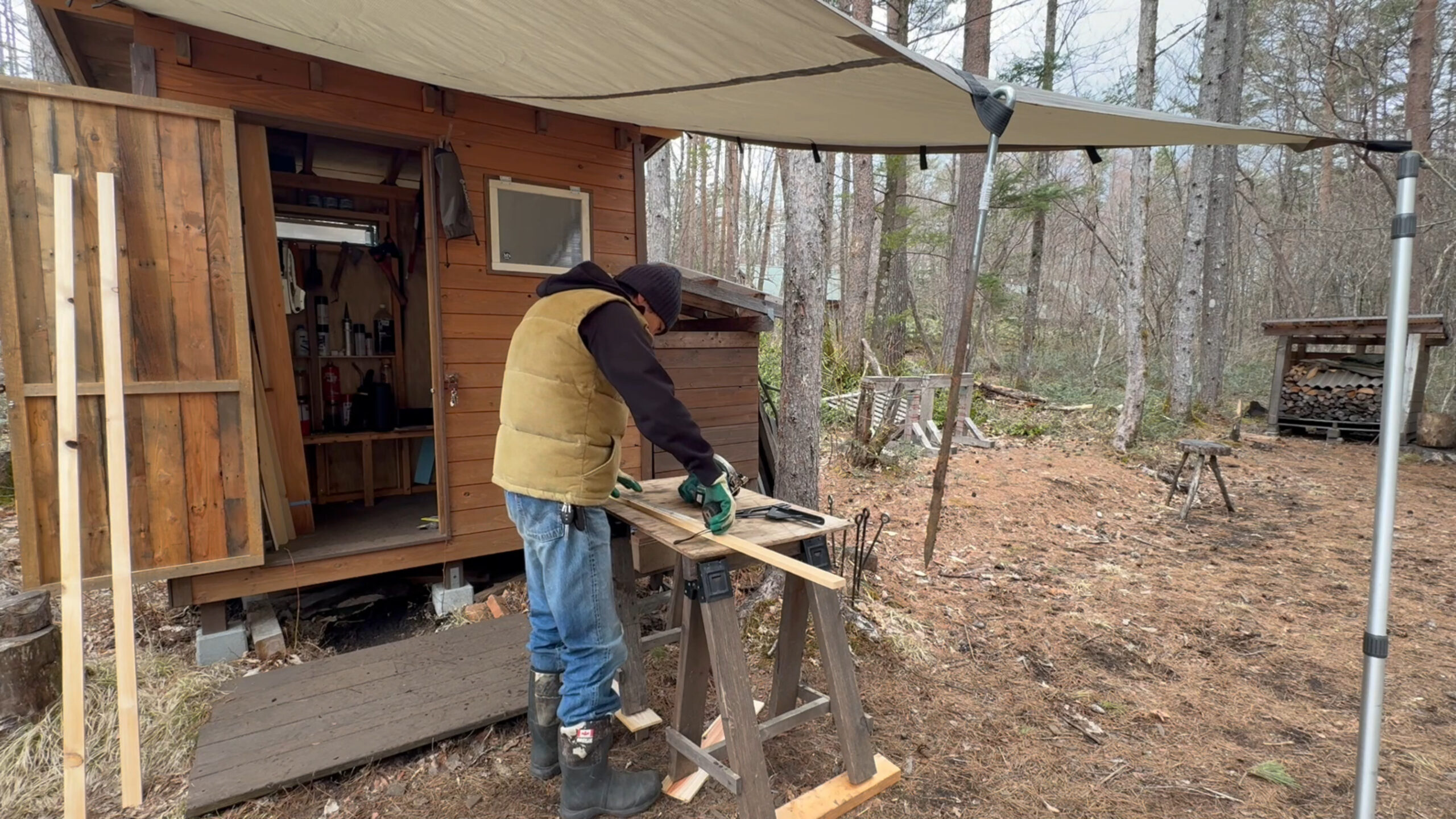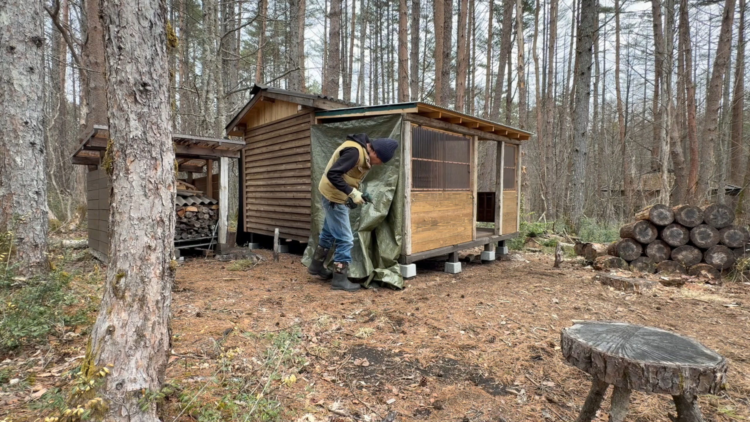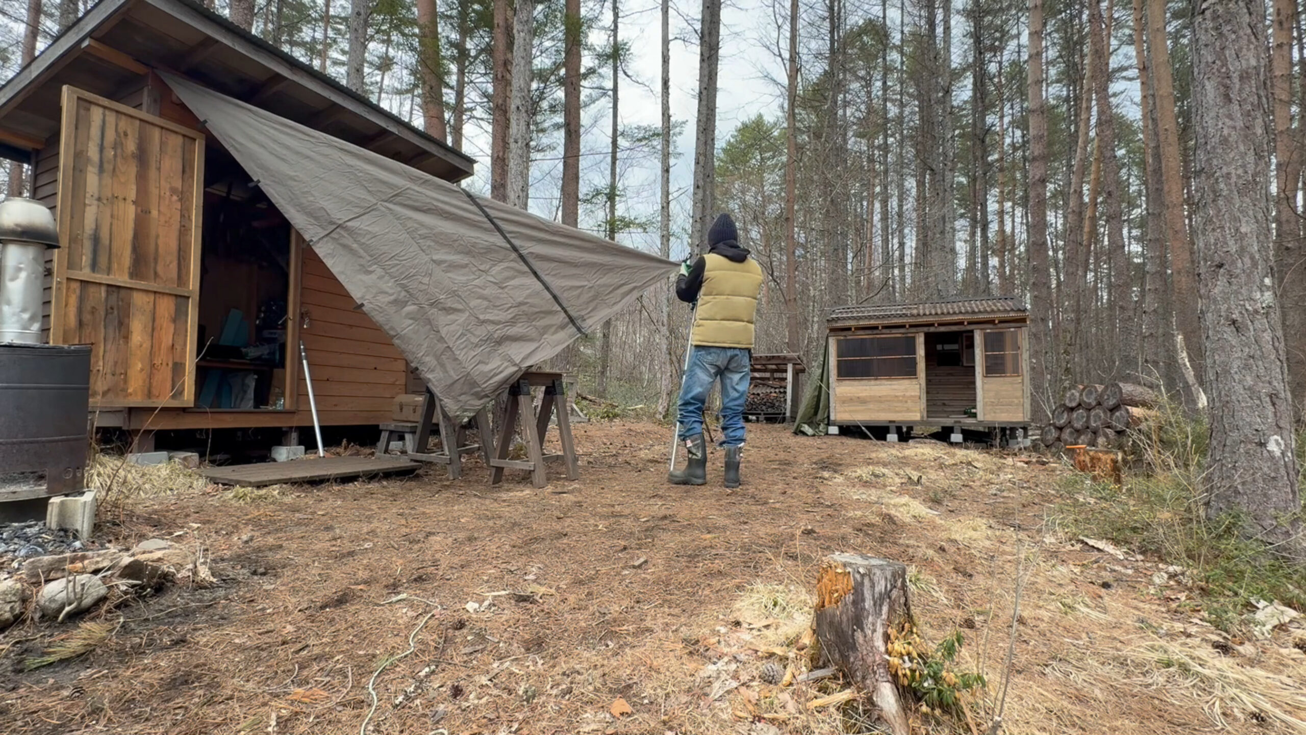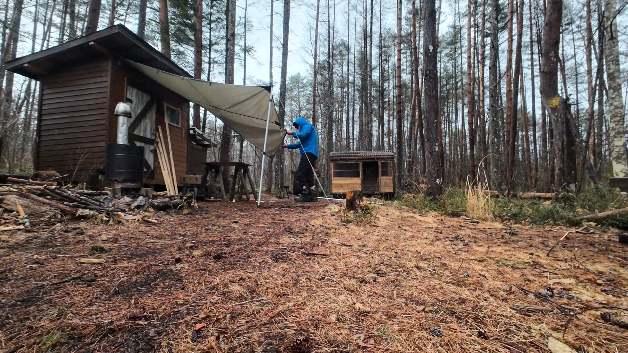 これで雨を凌ぎながら作業を進めたいと思います。
