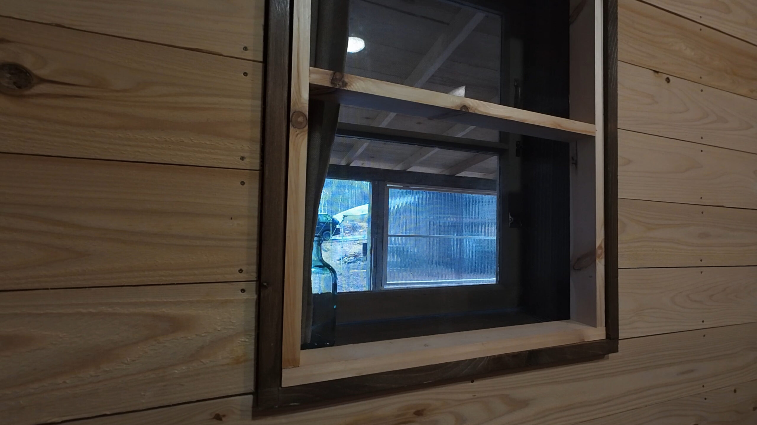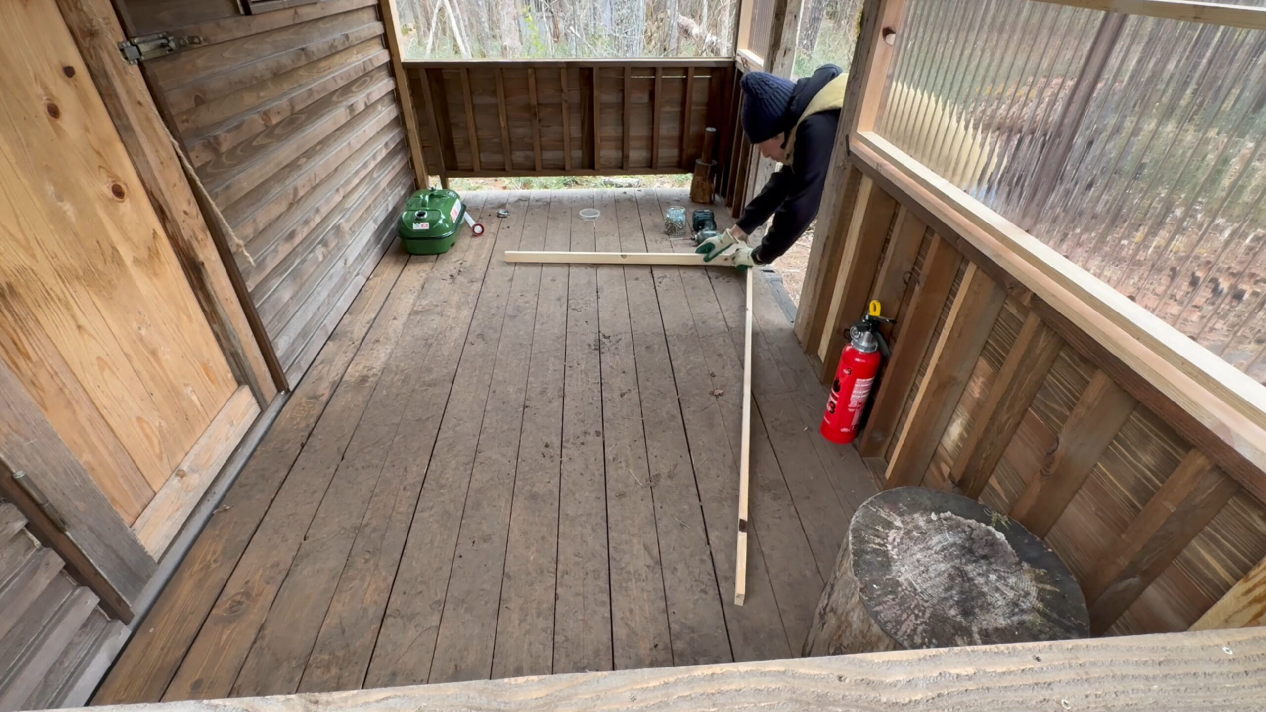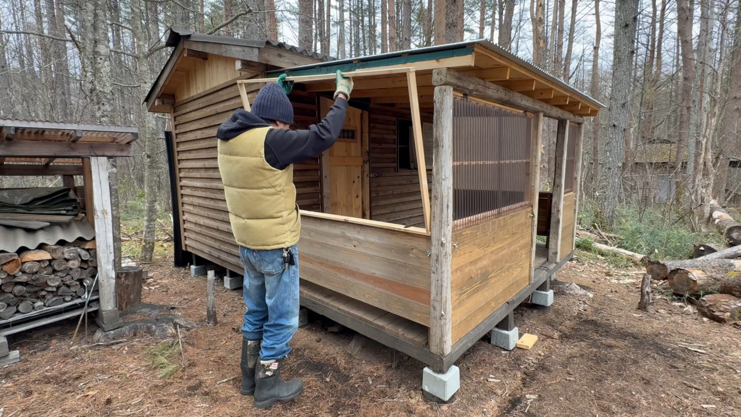 今回も前回に引き続き自作の山小屋の屋根付きデッキの開閉窓の施工をしたのでその様子をお送りします。